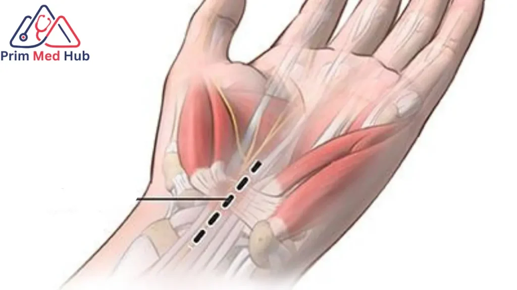 - عمل شق جراحي صغير في منطقة الضغط في راحة اليد.